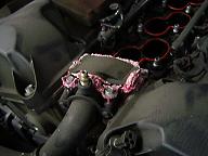 赤くなってる箇所が、漏れたクーラントが固まって、こんな感じになっちゃってます。